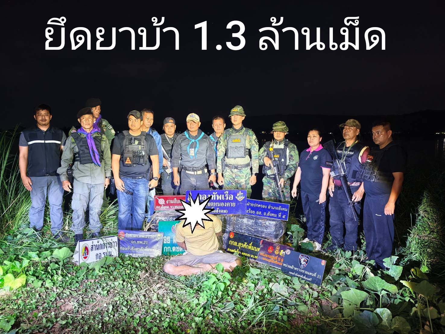 กองทัพเรือยึดยาบ้ากว่า 1.3 ล้านเม็ด ริมแม่น้ำโขง จ.หนองคาย จับกุมผู้ต้องหาชาวลาว 1 ราย พลเ…