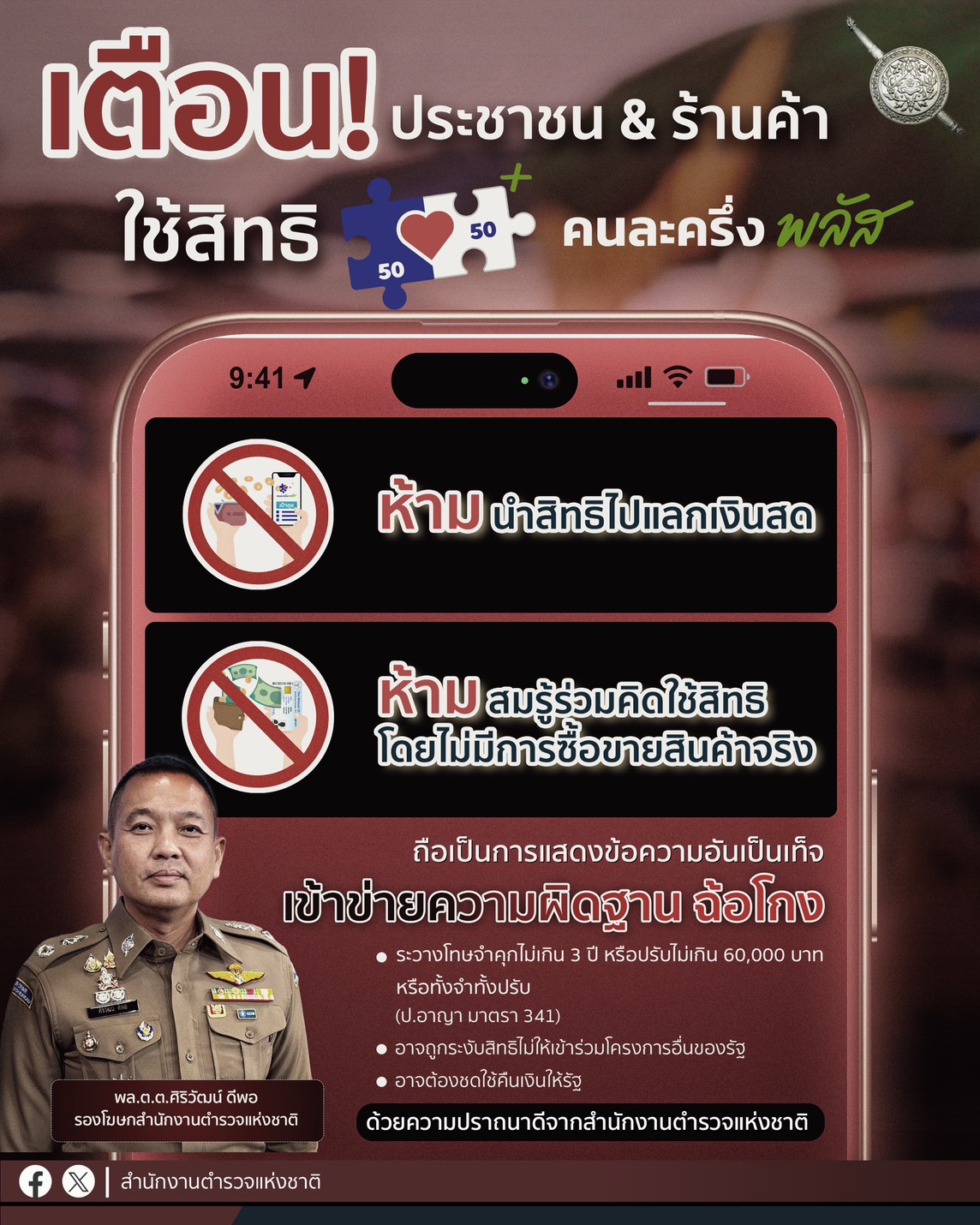 Read Moreสำนักงานตำรวจแห่งชาติ เตือน นำสิทธิ “คนละครึ่งพลัส” ไปแลกเงินสด โดยไม่มีการซื้อขายจริง เข้าข่ายฉ้อโกง มีโทษ จำคุก 3 ปี ปรับ 60,000 บาท