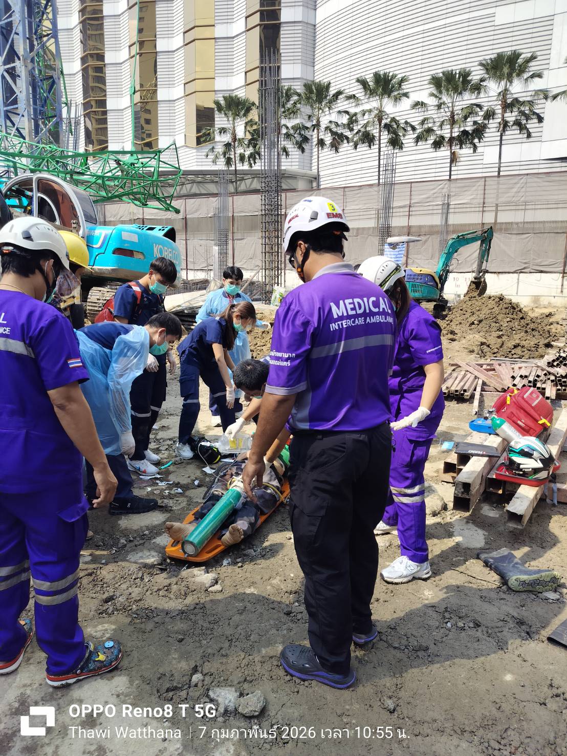 ทาวเวอร์เครนหักกลางอโศก ทับคนงานเจ็บ 2 ราย หนึ่งสาหัส กู้ชีพเร่ง CPR ส่ง รพ.ตำรวจ