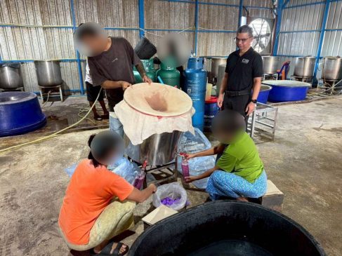 เข้าตรวจค้นสถานที่ผลิต ภายโกดังแห่งหนึ่ง ในพื้นที่ ต.ในคลองบางปลากด อ.พระสมุทรเจดีย์    จ.สมุทรปราการ พบ Miss เทียน (สงวนสนามสกุล) สัญชาติเมียนมา อายุ 19 ปี เป็นผู้นำตรวจค้น โดยขณะตรวจค้นพบว่า ภายในโกดังดังกล่าวมีการผลิต โดยต้มใบกระท่อมต้มในหม้อ จากนั้นนำมาผสมน้ำเชื่อมรสชาติต่างๆ และใช้แรงงานประเทศเพื่อนบ้านนั่งกรอกลงขวดบรรจุภัณฑ์โดยไม่สวมถุงมือแต่อย่างใด