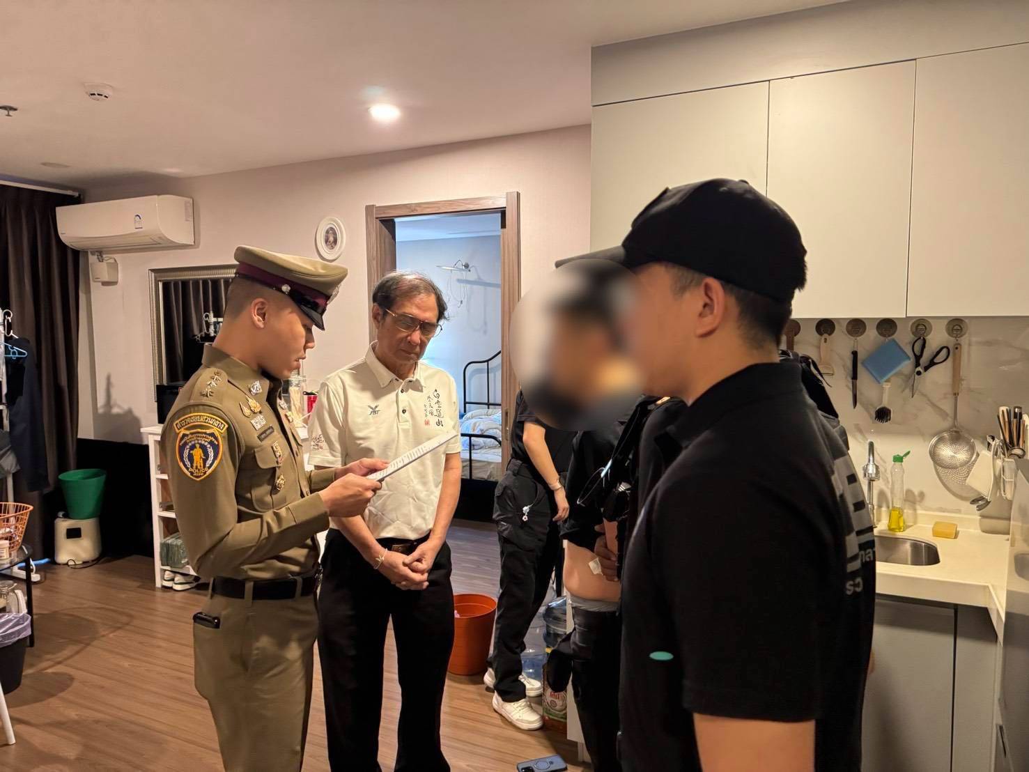 ต่อมา เจ้าหน้าที่ตำรวจได้นำหมายค้นเข้าทำการตรวจค้น คอนโดหรูดังกล่าว ตั้งอยู่ที่ แขวงห้วยขวาง เขตห้วยขวาง กรุงเทพมหานคร จากการตรวจค้นพบตัว นายไต้ฯ (Mr.Dai) ผู้ต้องหาตามหมายจับอยู่ภายในสถานที่ดังกล่าว เจ้าหน้าที่ตำรวจพร้อมล่ามจึงแสดงตัวเข้าจับกุมและแสดงหมายจับ ตรวจดูและอ่านให้ฟังจนเข้าใจแล้ว โดยยอมรับว่าเป็นบุคคลตามหมายจับจริง และยังไม่เคยถูกจับกุมตามหมายจับนี้มาก่อน เจ้าหน้าที่ตำรวจจึงได้แจ้งข้อกล่าวหาตามหมายจับและแจ้งสิทธิตามกฎหมายให้ทราบ จากนั้นได้นำตัวส่งเจ้าพนักงานอัยการพิเศษฝ่ายกิจการต่างประเทศ เพื่อดำเนินการตามกฎหมายว่าด้วยการส่งผู้ร้ายข้ามแดนต่อไป