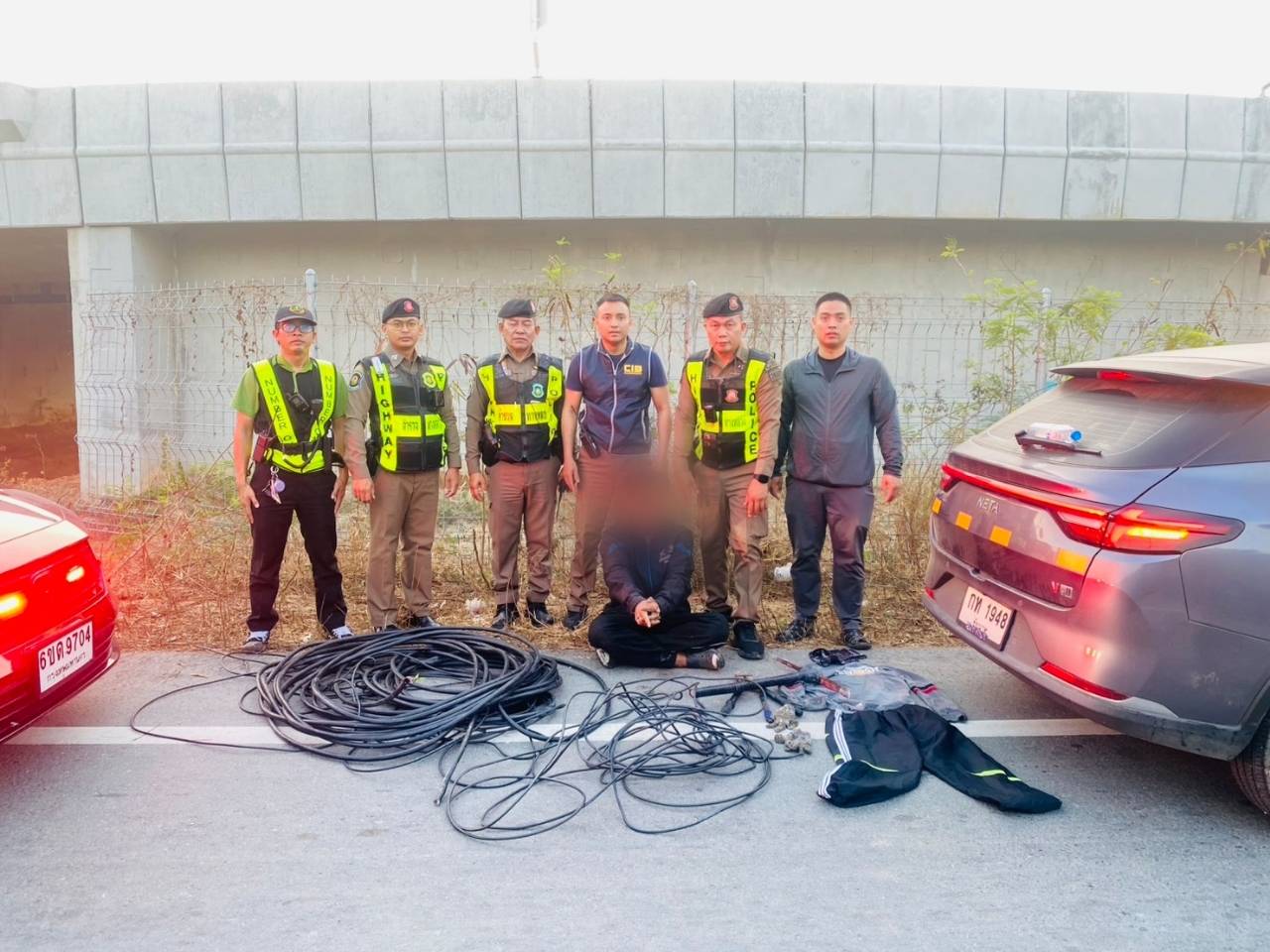 ตำรวจสอบสวนกลาง (CIB) รวบหนุ่มลอบตัดสายไฟต้นเหตุไฟดับบนทางหวงพิเศษ M81