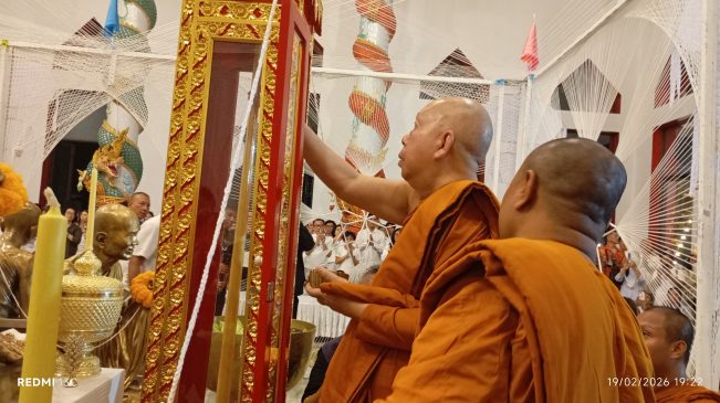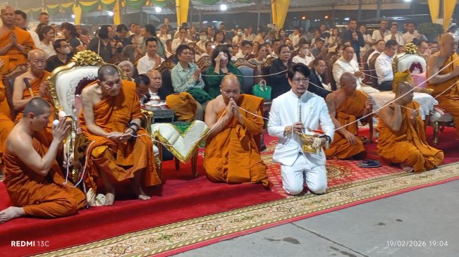 ทั้งนี้ พุทธศาสนิกชนร่วมพิธีโดยพร้อมเพรียงกัน เพื่อร่วมสร้างบุญกุศลและสืบสานพระพุทธศาสนาให้มั่นคงสืบไป.