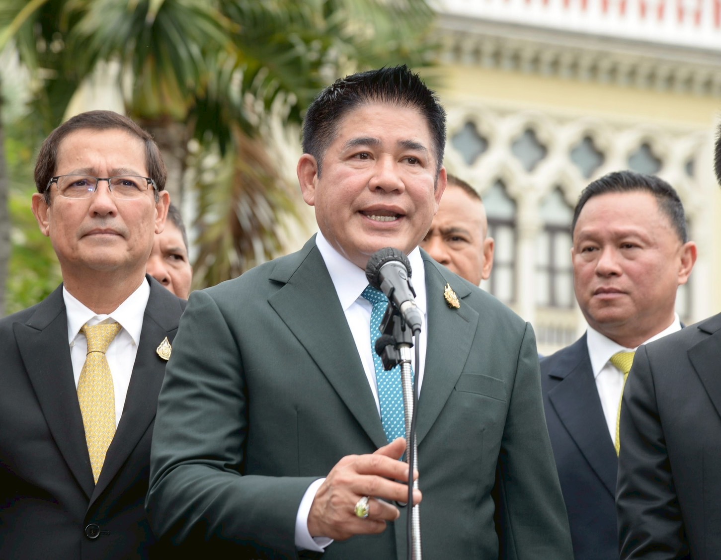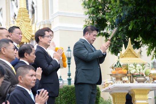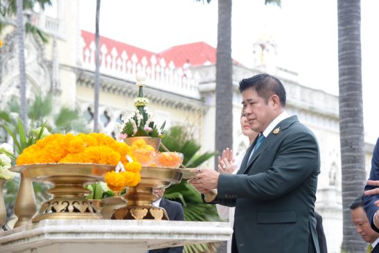 เมื่อวันที่ 26 ก.ย.เวลา 09.29 ร.อ.ธรรมนัส พรหมเผ่า รองนายกรัฐมนตรี และรัฐมนตรีว่าการกระทรวงเกษตรและสหกรณ์ พร้อมด้วยนางสาวธนพร ศรีวิราช ภริยา นายอรรถกร ศิริลัทธยากร รัฐมนตรีว่าการกระทรวงการท่องเที่ยวและกีฬา เข้าทำเนียบรัฐบาลโดยสวมชุดสูทสีเขียวเข้ม ซึ่งเป็นสีประจำกระทรวงและประจำพรรคกล้าธรรม(กธ.)เพื่อสักการะสิ่งศักดิ์สิทธิ์ในเวลา 09:29 น โดยเริ่มจุดธูป 16 ดอก และหันหน้าไปยังตึกไทยคู่ฟ้าซึ่งด้านบนมีศาลท้าวมหาพรหมอยู่ด้านบน และสวดบทสวด 16 ชั้นฟ้า 15 ชั้นดิน ซึ่งเป็นการสักการะสิ่งศักดิ์สิทธิ์ทั้งหมดที่อยู่ในทำเนียบรัฐบาล ก่อนที่จะสักการะศาลพระภูมิ-เจ้าที่ และศาลตา-ศาลยาย