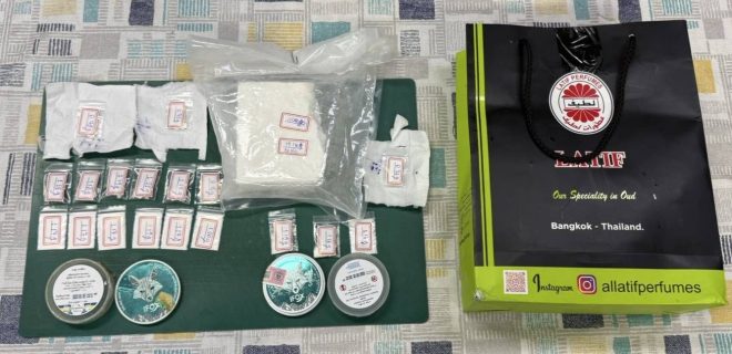 กระทั่งพบตัว Mr.Philip (สงวนนามสกุล) อายุ 64 ปี สัญชาติอังกฤษ เดินลงมาจากคอนโดมิเนียมหรู (Sukhumvit Suite) ท่าทางมีพิรุธในมือถือถุงกระดาษสีดำ – เขียว เจ้าหน้าที่จึงแสดงตัวขอตรวจค้น