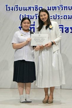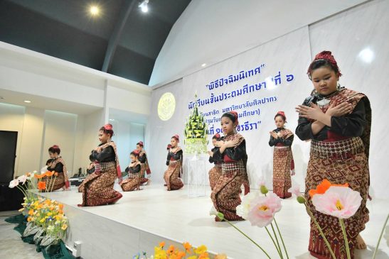 “ขอขมา กราบอำลาคุณครู” โดยมีคณะผู้บริหารร่วมกันติดเข็มกลัดกล้วยไม้ และมอบประกาศนียบัตรจบการศึกษา ป.6 พร้อมที่จะก้าวออกจากรั้วสาธิตแห่งนี้ไปเป็นนักเรียนระดับมัธยมศึกษา ซึ่ง ศ.ดร.คณิต เขียววิชัย คณบดีคณะศึกษาศาตร์ มหาวิทยาลัยศิลปากร