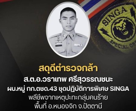 ร่วมพิธีรดน้ำศพ และเข้าเคารพศพ ส.ต.อ.วราเทพ ศรีสุวรรณชนะ ผบ.หมู่ กก.ตชด.43 ซึ่งเสียชีวิต จากเหตุปะทะคนร้าย พื้นที่ อ.หนองจิก จว.ปัตตานี ทำให้ ส.ต.อ.วราเทพฯ เสียชีวิต เมื่อวันที่ 16 มี.ค. 2569 เวลาประมาณ 09.00 น.