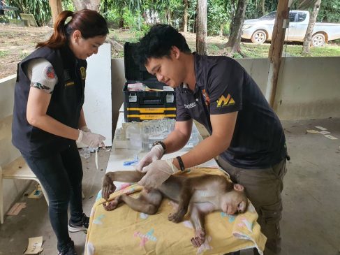 จากการตรวจสอบพบว่า ลิงกังเพศผู้ 1 ตัว ถูกล่ามโซ่ไว้กับต้นไม้ในสภาพที่เข้าข่ายการทารุณกรรมสัตว์ ขณะที่นกปรอดหัวโขน 3 ตัว ถูกขังอยู่ในกรง ผู้ต้องหาไม่สามารถนำหลักฐานหรือเอกสารใดๆ มาแสดงเพื่อยืนยันการได้รับอนุญาตให้ครอบครองสัตว์ป่าคุ้มครองเหล่านี้ได้