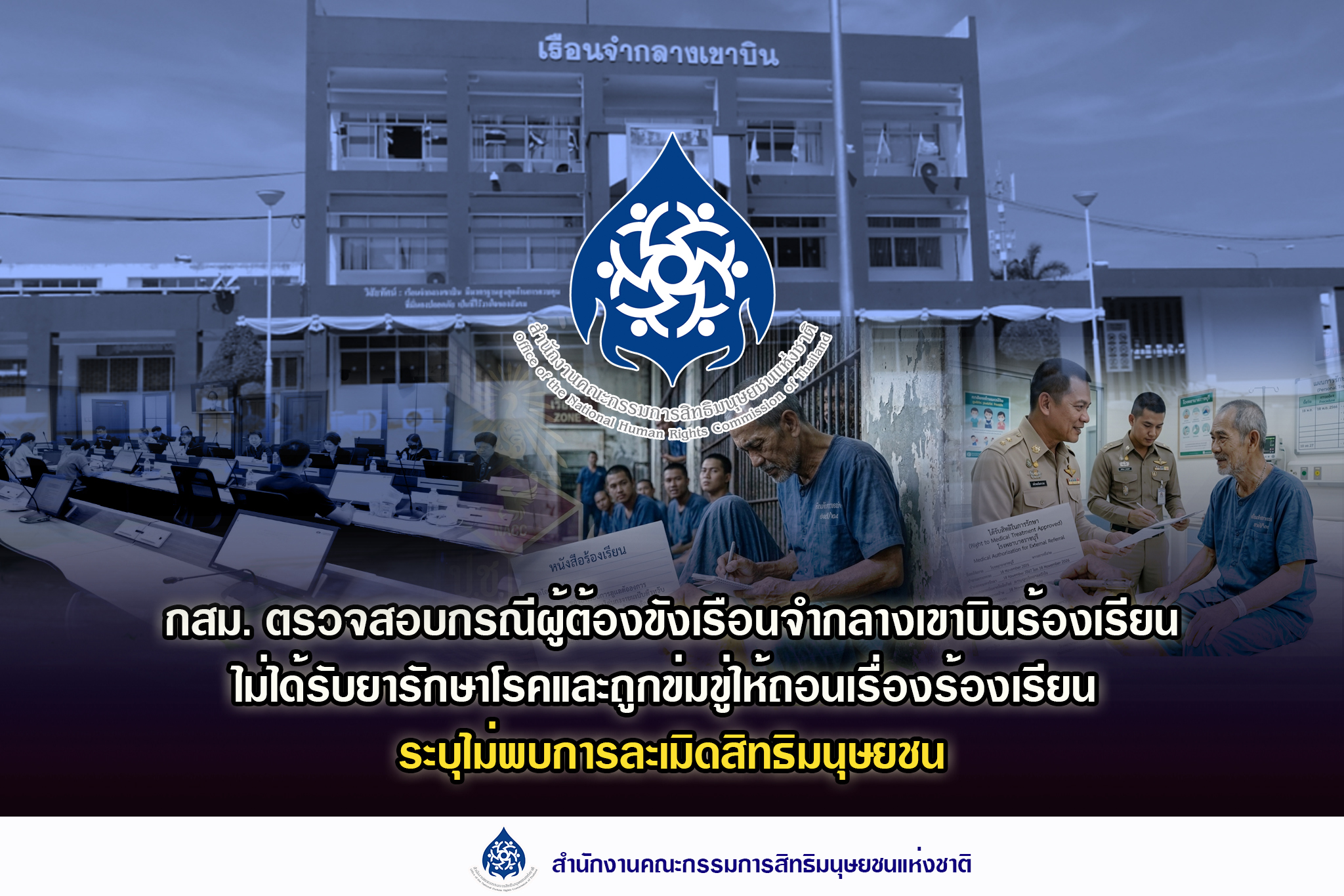 กสม.  ตรวจสอบกรณีผู้ต้องขังเรือนจำกลางเขาบินร้องเรียนไม่ได้รับยารักษาโรคและถูกข่มขู่ให้ถอนเรื่องร้องเรียน เผยไม่พบการละเมิดสิทธิมนุษยชน