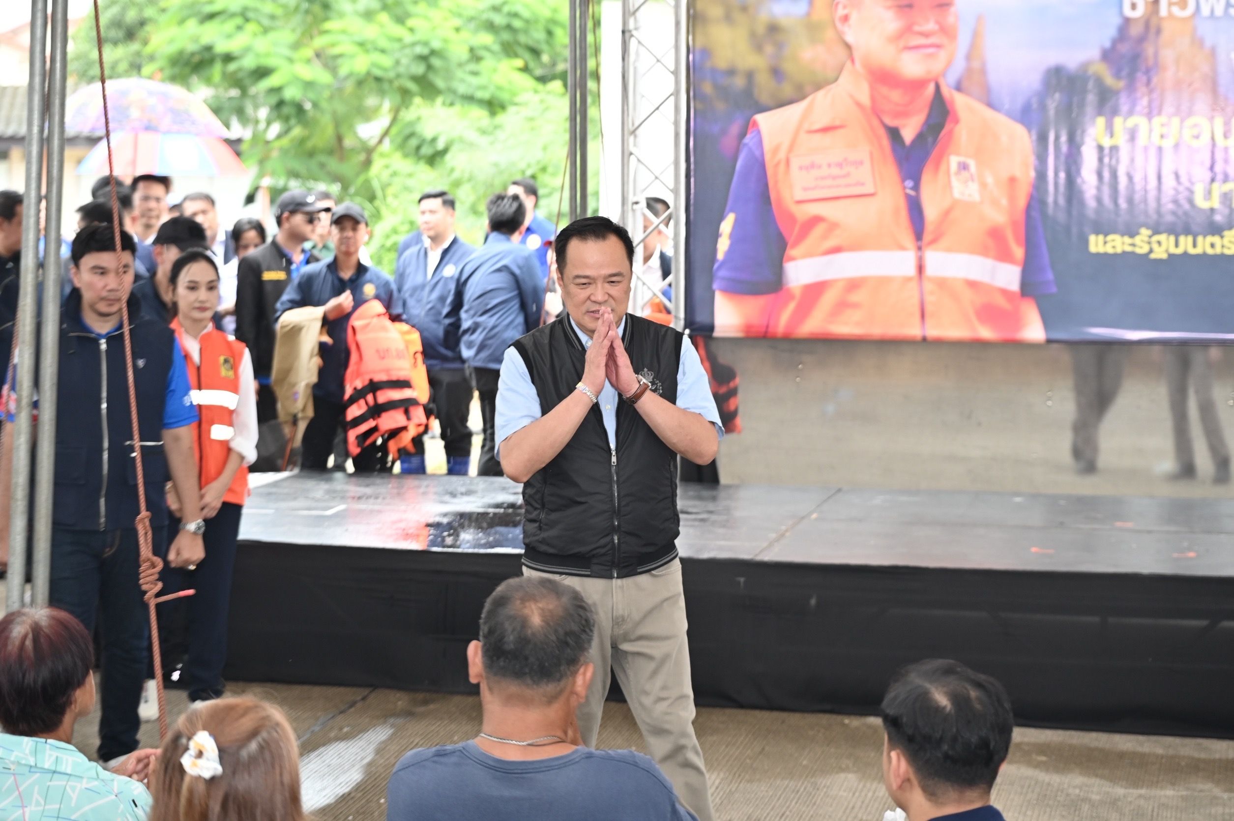 “ตอนก่อนที่จะมาเป็นนายกรัฐมนตรี ก็เป็นมท. 1 เข้าใจในเรื่องของความเร่งด่วนและความเดือดร้อนของประชาชน ตอนนั้นเราก็เร่ง ​ แต่คนอนุมัติจ่ายก็เป็นอีกคน เรื่องของการช่วยเหลือหรืออนุมัติงบกลางมาช่วยเหลือประชาชนผู้ประสบภัยทั่วประเทศ รัฐมนตรีว่าการกระทรวงมหาดไทย ที่ชื่ออนุทิน ก็จะทำเรื่องเสนอให้นายกรัฐมนตรีคือชื่ออนุทินอนุมัติ​ เพราะฉะนั้นขั้นตอนจะถูกลดลงมาขอเพียงอย่างเดียวข้าราชการตั้งแต่ระดับท้องถิ่นระดับจังหวัดไปจนถึงระดับกรมกระทรวง ขอให้พิจารณาอย่างรวดเร็ว ในคณะรัฐมนตรีถ้าเป็นเรื่องของประชาชนแล้วรัฐมนตรีส่วนใหญ่ก็คือสมาชิกสภาผู้แทนราษฎรของท่าน เราเข้าใจถึงความทุกข์และความจำเป็นเร่งด่วนเป็นอย่างดี ขอให้ประชาชนวางใจว่าทุกคนจะทำงานอย่างเต็มที่ รวดเร็ว เพื่อให้ทุกข์ของท่านได้รับการคลายออกไปโดยเร็วที่สุด”นายอนุทิน กล่าว