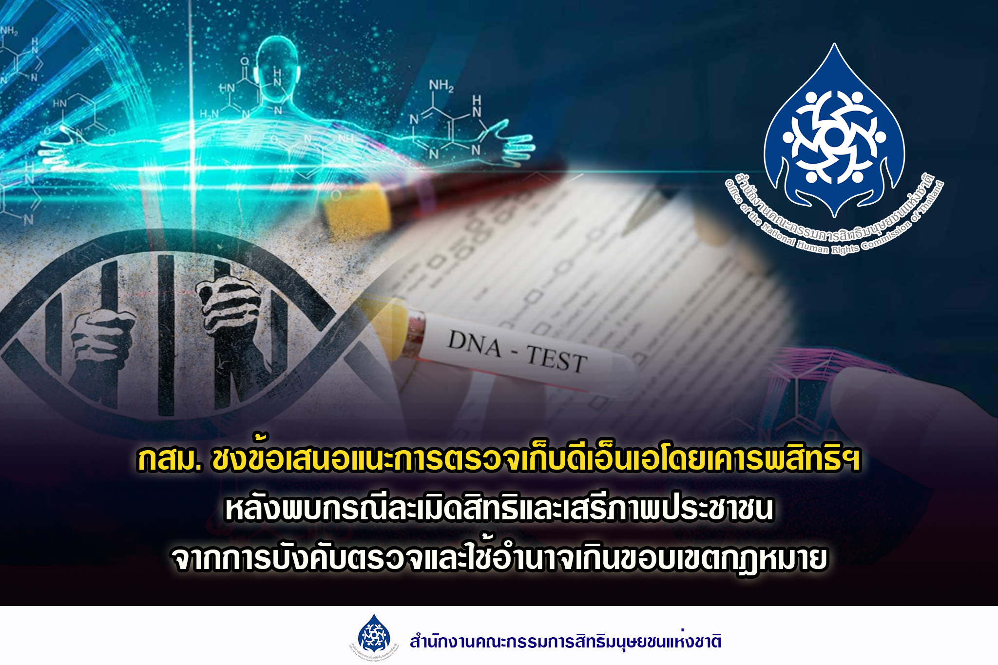 กสม. ชงข้อเสนอแนะการตรวจเก็บดีเอ็นเอโดยเคารพสิทธิฯ หลังพบกรณีละเมิดสิทธิและเสรีภาพประชาชนจากการบังคับตรวจและใช้อำนาจเกินขอบเขตกฎหมาย