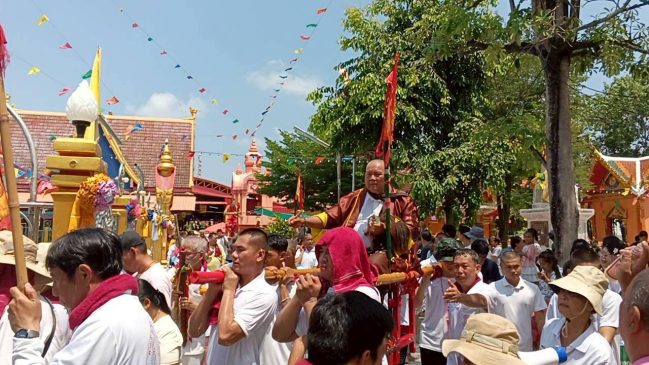 ภายหลังการละขันธ์ในวันเพ็ญขึ้น 15 ค่ำ ปีเดียวกัน “ซาก๋ง” ได้ดำริให้จัดขบวนอัญเชิญภาพฉายาลักษณ์ของหลวงพ่อ เวียนทักษิณาวรรตรอบจุฬามณีปราสาท อันเป็นสถานที่ประดิษฐานสังขาร ก่อนประกอบพิธีสรงน้ำต่อหน้าภาพดังกล่าว เพื่อแสดงความเคารพบูชา และสืบทอดเป็นประเพณีตราบจนปัจจุบัน