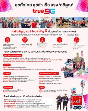 ทรู คอร์ปอเรชั่น เตรียมพร้อมสัญญาณ 5G และไฟเบอร์เน็ตบ้าน รองรับท่องเที่ยวสงกรานต์ยุคน้ำมันแพง เสริมความแรงเชื่อมทุกการเดินทางและช่วงเวลาครอบครัวทั่วไทย