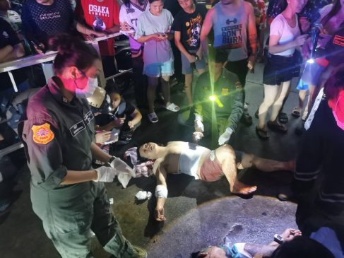ส่วน MR.KYAW OHN และ MR.AUNG MOE KYAW บาดเจ็บเล็กน้อย เจ้าหน้าที่ทำการปฐมพยาบาลเบื้องต้นในจุดเกิดเหตุ