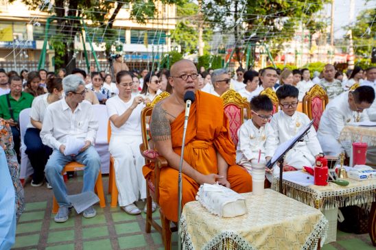 จากนั้นพิธีได้เริ่มด้วยการบวงสรวงองค์เทพยาดาอารัก ซึ่งเป็นพิธีทางพราหมณ์ เพื่อเป็นการแสดงความเคารพต่อสิ่งศักดิ์สิทธิ์ จากนั้นหลวงพี่น้ำฝน ได้นำกล่าวคำปฏิญาณ เพื่อขอขมากรรม อันเป็นการกระทำที่เคยผิดพลั้งพลาดด้วยความตั้งใจก็ดีไม่ตั้งใจก็ดี และสงบจิตใจเพื่อชำระล้างจิตใจเพื่อพร้อมสำหรับการเริ่มต้นการดำเนินชีวิตครั้งใหม่ด้วยการมีสัจจะไว้เป็นที่ตั้ง จากนั้นคณะสงฆ์ได้ทำพิธีสวดเจริญพระพุทธมนต์เพื่อเป็นสิริมงคลเป็นอันเสร็จสิ้นพิธี