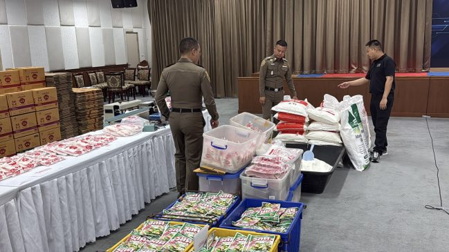 11.00 น. 17 เม.ย. 69 ที่ห้องประชุมชัยจินดา ชั้น 2 อาคารประชาอารักษ์ พล.ต.ท.ณัฐศักดิ์ เชาวนาศัย ผบช.ก. พร้อมด้วยเจ้าหน้าที่ บก.ปอศ. และตัวแทนจาก อย. ร่วมแถลงผลปฏิบัติการ “Take Down!! ขบวนการผลิตผงชูรส-รสดีปลอม” หลังขยายผลจับกุมเครือข่ายผลิตและจำหน่ายรายใหญ่ ยึดของกลางรวมกว่า 24,918 ชิ้น มูลค่าความเสียหายเกือบ 2 ล้านบาท