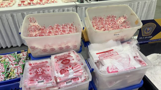 คำเตือนจากเจ้าหน้าที่ สินค้าปลอมเหล่านี้มักผสมสาร “บอแรกซ์” หรือ “โซเดียมเมตาฟอสเฟต” ซึ่งเป็นสารต้องห้ามในอาหาร หากบริโภคเข้าไปจะสะสมในร่างกาย ส่งผลเสียต่อการทำงานของไต ระคายเคืองระบบทางเดินอาหารอย่างรุนแรง และอาจเป็นอันตรายถึงชีวิต