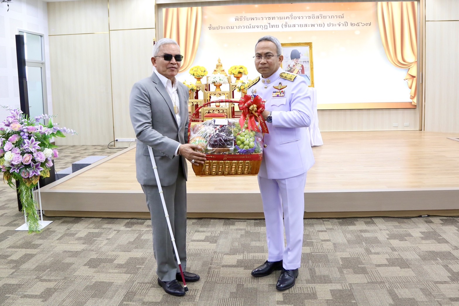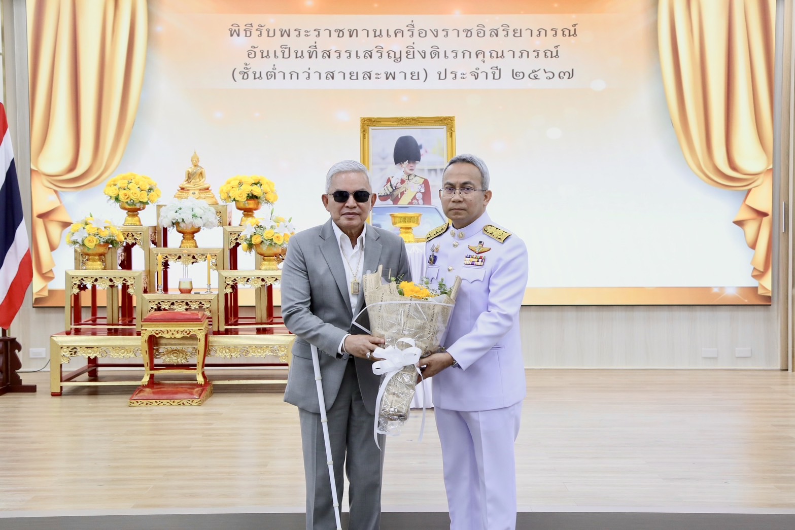 นายอำนวย กลิ่นอยู่ นายกสมาคมกีฬาคนตาบอดแห่งประเทศไทย เข้ารับพระราชทานเครื่องราชอิสริยาภรณ์อันเป็นที่สรรเสริญยิ่งดิเรกคุณาภรณ์