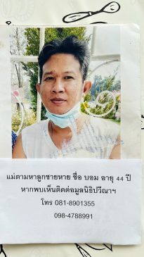 ที่มูลนิธิปวีณาฯ : วันที่ 29 ก.ย.68 นางอารมย์ รักพันธุ์ อายุ 64 ปี ผู้เป็นแม่ เดินทางมาจากย่านรามคำแหง กรุงเทพฯ เข้าร้องทุกข์ต่อ นางปวีณา หงสกุล ประธานมูลนิธิปวีณาหงสกุลเพื่อเด็กและสตรี ขอให้ช่วยตามหา นายทองวุฒิ รักพันธุ์ ชื่อเล่น บอม อายุ 44 ปี ลูกชายซึ่งมีความพิการประเภท 4 (พิการทางจิตใจหรือพฤติกรรม) ซึ่งเดินหายออกจากบ้านไปตั้งแต่วันที่ 23 ม.ค.68 เป็นเวลากว่า 8 เดือนแล้ว แม่พยายามตามหาไปยังที่ต่างๆ แต่ก็ไม่พบ และแม่ยังทำใบปลิวที่มีรูปลูกชายและเบอร์โทรศัพท์แม่ออกจากจ่ายหากใครพบเห็นแจ้งเบาะแสจนเจอลูกชายแม่จะมีรางวัลให้ แต่เวลาผ่านไปก็ยังไม่มีข่าวคราวของลูกชายเลย ไม่รู้ว่าลูกจะเป็นตายร้ายดีอย่างไร ขอมูลนิธิปวีณาฯ ช่วยประชาสัมพันธ์ตามหาลูกให้ด้วย