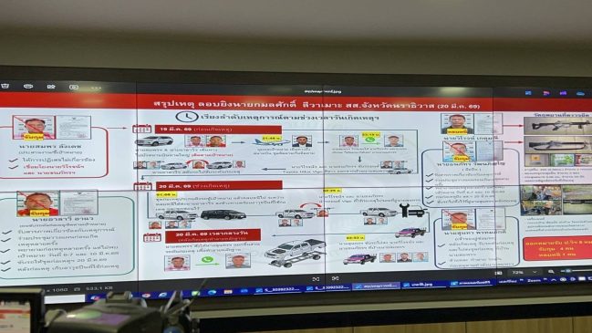 พล.ต.อ.สำราญ รอง ผบ.ตร. กล่าวว่า คดีนี้นายกรัฐมนตรีได้กำชับให้เร่งรัดติดตามตัวผู้ก่อเหตุให้โดยเร็ว ซึ่งตั้งแต่วันที่เกิดเหตุ 19-20 มี.ค.69 หลังเกิดเหตุเจ้าหน้าที่จับกุมตัวนายสมพร ลังเดช ผู้ต้องหารายแรก ทำหน้าที่ประสานงาน กับกลุ่มผู้ก่อเหตุและเป็นคนชี้เป้า พร้อมเชิญตัวลูกชายนายสมพรมาสอบปากคำ จากนั้นได้ไปติดตามจับกุมตัวนายอาลาวี อาแว เป็นคนขับรถคันก่อเหตุ ติดตามเป้าหมาย จับได้ที่กรุงเทพฯ ก่อนจะไปจับกุมตัวนายสุนทร พรหมภักดี เจ้าของอู่รถ และทางนายกฯ ต่อมาจับกุมนายธนภัทร วัฒนภิญโญ มือปืน ได้ที่อำเภอทองภาภูมิ จังหวัดกาญจนบุรี โดยผู้ต้องหาทั้ง 4 รายให้การเป็นประโยชน์ ซึ่งได้นำเก็บไว้ในสำนวน กระทั่งวันนี้จับกุม ร.อ.วิโรจน์ เกตุมณี มือปืนซึ่งเป็นผู้ต้องหารายสุดท้ายของขบวนการนี้ โดยทั้ง 5 รายแบ่งหน้าที่ตั้งแต่คนขับรถดูต้นทาง ขับรถพาไปก่อเหตุยิง มือปืน 2 ราย รวมถึงคนชำแหละรถ หลังจากนี้ได้มอบหมายให้ทาง ผู้บัญชาการตำรวจภูธรภาค 9 ขยายผลถึงตัวผู้เกี่ยวข้องเพิ่มเติมต่อไป