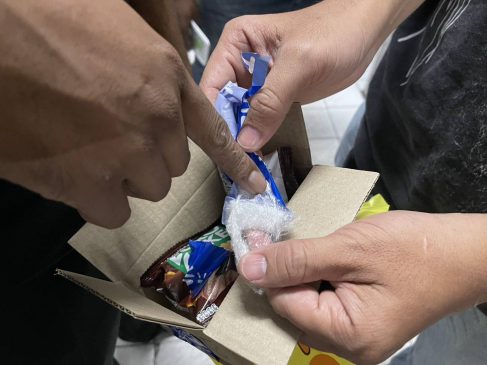 ต่อมาเวลา 18.55 น. เจ้าหน้าที่เฝ้าซุ่มอยู่บริเวณดังกล่าว พบชายต้องสงสัยลงมาส่งยาให้ไรเดอร์ ลักษณะตรงกับภาพจากกล้องวงจรปิด จึงแสดงตัวเข้าจับกุม โดยนายสมพงษ์รับสารภาพว่ามีเคตามีนซุกซ่อนอยู่ในกล่องพัสดุ 2 ถุง และยังมียาเสพติดเก็บไว้ในห้องพัก จึงนำเข้าตรวจค้นและพบแฟนสาวพร้อมของกลางจำนวนมาก