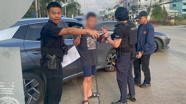 เจ้าหน้าที่ชุดจับกุม นำโดย ว่าที่ พ.ต.ต.ธีรเดช อรุณนพรัตน์ สว.กก.1 บก.ป. พร้อมเจ้าหน้าที่ตำรวจ กก.1 บก.ป.