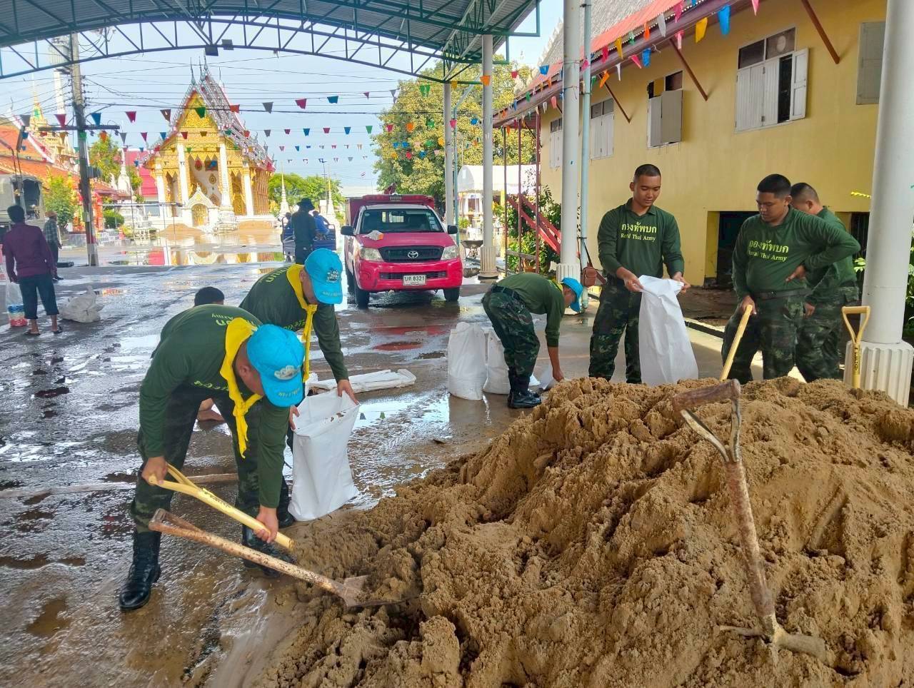 – จ.อุดรธานี มณฑลทหารบกที่ 24 ช่วยขนย้ายสิ่งของและบรรจุกระสอบทรายทำผนังกั้นน้ำ เนื่องจากอ่างเก็บน้ำห้วยหลวงเอ่อล้นตลิ่ง ณ วัดท่าสว่างศรีไพฑูรย์ ต.หมูม่น อ.เมืองอุดรธานี