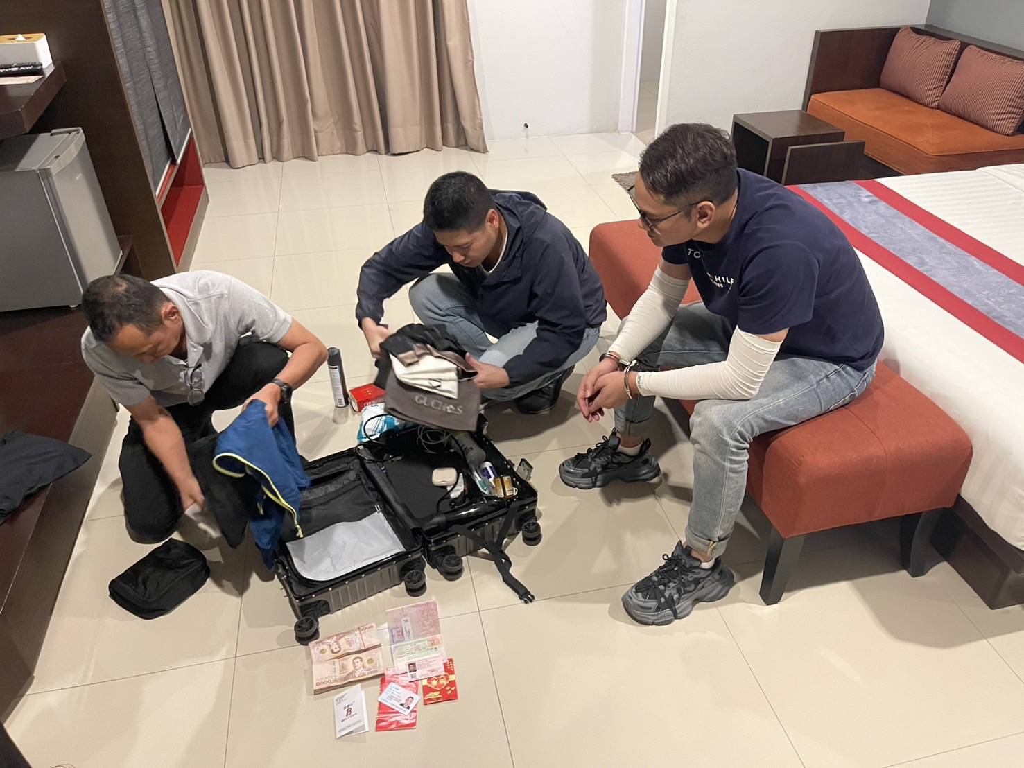 เจ้าหน้าที่ตำรวจชุดจับกุมซึ่งประจำอยู่บริเวณห้างทอง ณ ห้างซีคอนสแควร์ ได้สังเกตุเห็นกลุ่มบุคคลต้องสงสัย ซึ่งมีชายชาวจีนมีพฤติการณ์คล้ายการสั่งการ จึงเฝ้าสังเกตพฤติกรรมและพิสูจน์ทราบตัวบุคคลที่คาดว่าจะเกี่ยวข้องตามที่ warroom สำนักงานตำรวจแห่งชาติ ได้แจ้งให้กองบัญชาการตำรวจนครบาลทราบเมื่อกลุ่มผู้ต้องหาได้เข้าทำธุรกรรมภายในห้างทอง เจ้าหน้าที่ตำรวจชุดจับกุม จึงได้เดินทางไปแสดงตนขอตรวจสอบ เมื่อไปถึงปรากฏว่าพบ