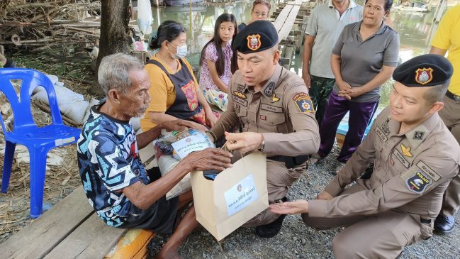เดินทางมาตรวจเยี่ยมและให้การช่วยเหลือประชาชนผู้เดือดร้อนที่ได้รับผลกระทบจากอุทกภัยและน้ำท่วมขัง ในเขตพื้นที่ หมู่ 1 ต.บางเลน โดยมอบถุงยังชีพและบริจาคสิ่งของเครื่องอุปโภคบริโภค เพื่อบรรเทาความเดือดร้อน ของผู้ประสบภัย ตามนโยบายของ ผบ.ตร.และ ผบช.ภ.7