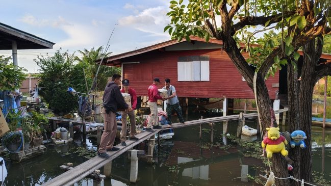 โดยชาวบ้านผู้ประสบภัยได้ร้องขอให้ จนท.ตร.มาช่วยชาวบ้านรื้อไม้สะพานและตอม้อเพื่อเก็บไว้ใช้สร้างสะพานเมื่อเกิดอุทกภัยจากแม่น้ำท่าจีนเอ่อล้นตลิ่งในคราวต่อไป