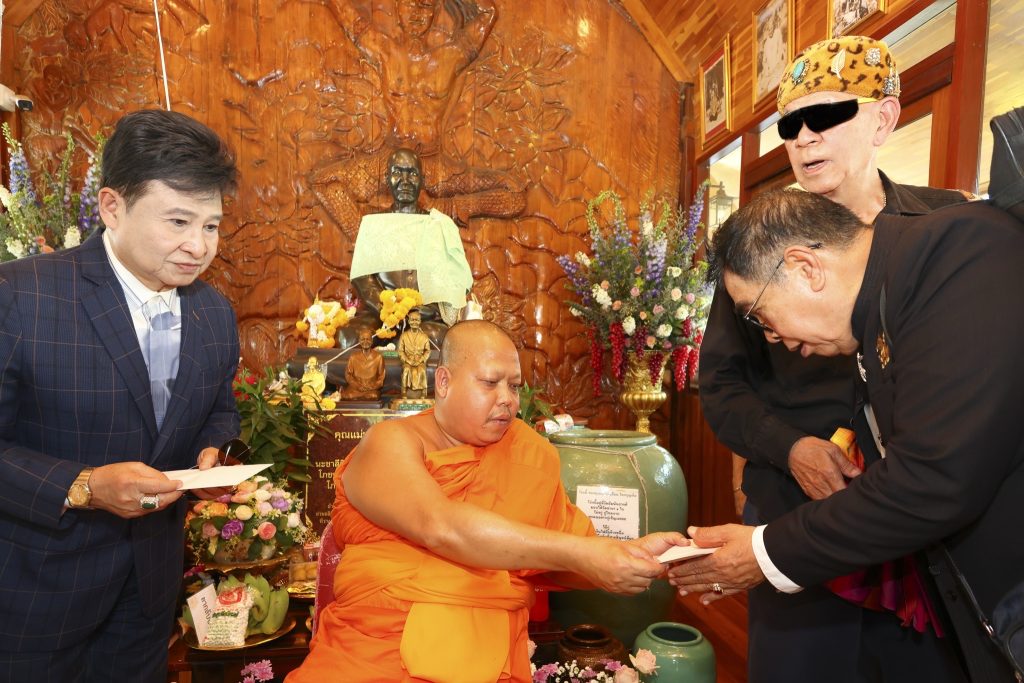 10.30. น คุณสมศักดิ์ จิตติพลังศรี กรรมการผู้จัดการ บริษัทซัยโจ เด็นกิ อินเตอร์เนชั่นแนล จำกัด คุณจันทนา จิตติพลังศรี ครอบครัว เป็นประธานฝ่ายฆาราวาส กล่าวคำถวายผ้าพระกฐิน และบริวารเพื่อถวายแด่พระภิกษุสงฆ์ และได้ทอดผ้ากฐิน ไตรจีวร และบริาร พร้อมกับมอบจปัจจัยจากการทอดกฐิน ประจำปี 2568 จำนวนหนึ่ง