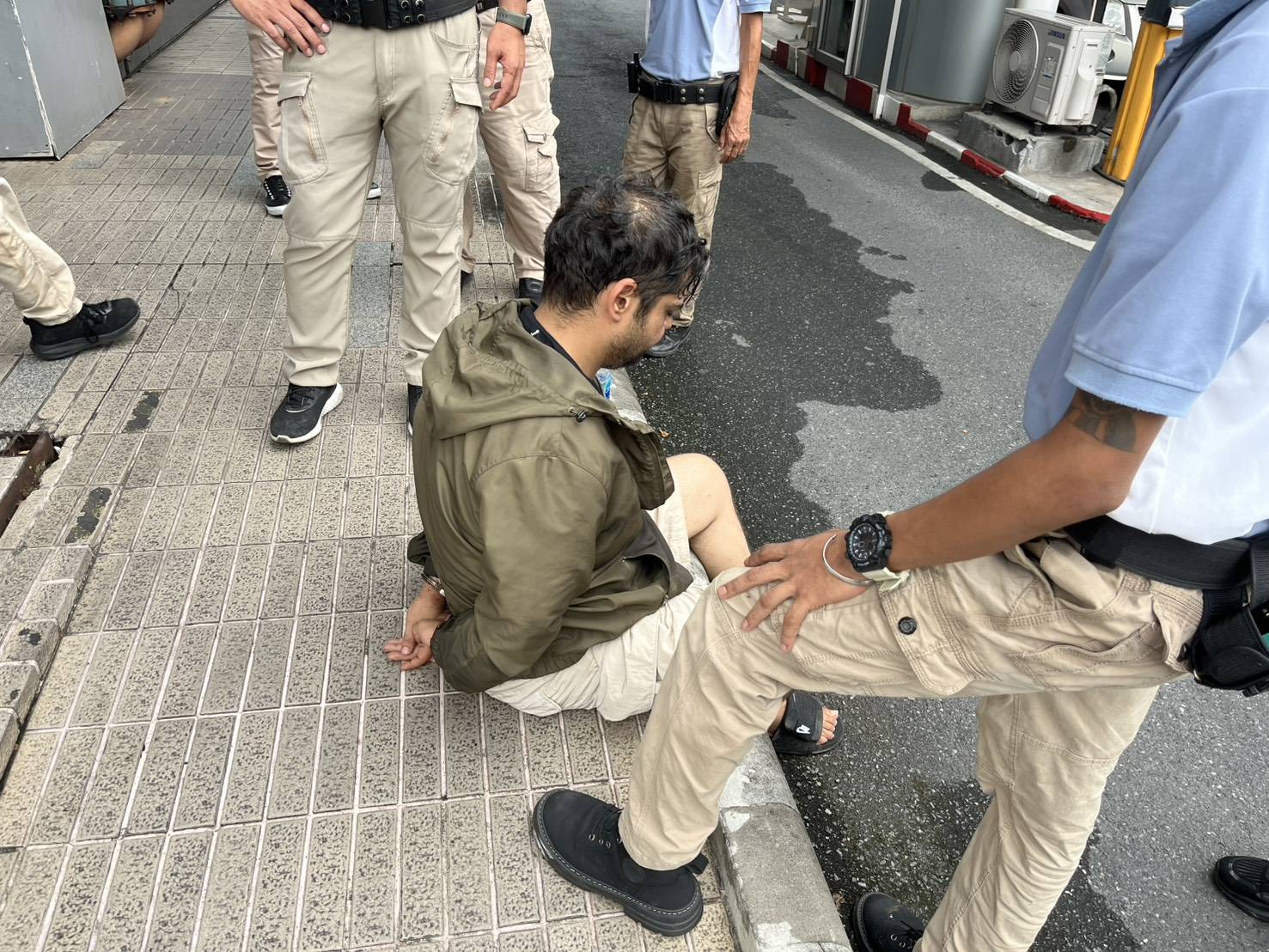 เมื่อเจ้าหน้าที่อาสาตำรวจฯ เข้าไปควบคุมสถานการณ์และเชิญตัวชายคนดังกล่าวออกจากพื้นที่ Mr. XXX สัญชาติอินเดีย ซึ่งเป็นผู้ก่อเหตุ ไม่ให้ความร่วมมือ และได้แสดงท่าทีข่มขู่เจ้าหน้าที่อาสาฯ โดยการ ชักโมเดลอาวุธปืนลักษณะเป็นพวงกุญแจไฟแช็ก ออกมาข่มขู่ ทำให้เจ้าหน้าที่เกรงว่าจะเกิดอันตรายแก่ประชาชนโดยรอบ จึงได้เข้าควบคุมตัวไว้