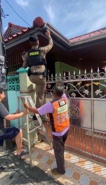 ต่อมาวันที่ 21 ต.ค.68 เจ้าหน้าที่ตำรวจ กก.สส.บก.น.6 และสายตรวจ สน.วังทองหลาง ได้ทำการติดตามตัวเหยื่อผู้เสียหาย และเจ้าของทรัพย์สินที่ได้ตรวจยึดจนทราบชื่อ น.ส.ลักขณา(สงวนนามสกุล) ผู้เสียหาย อยู่ที่บ้านในซ.ลาดพร้าว 64 วังทองหลาง กทม. และเจ้าหน้าที่ตำรวจได้อยู่บริเวณหน้าบ้าน ได้เรียกและรออยู่เป็นเวลานานก็ยังไม่ยอมมาเปิดประตู จึงได้ปีนเข้าไปในบ้านจนพบตัว น.ส.ลักขณา และแจ้งว่ายังคุยโทรศัพท์กับแก๊งค์คอลเซ็นเตอร์หลอกลวง และข่มขู่ทำให้เกิดความหวาดกลัวอยู่ตลอดเวลา และวางสายเมื่อทราบว่าเจ้าหน้าที่ตำรวจได้ปีนเข้ามาในบ้าน และแจ้งว่าหลงเชื่อแก๊งค์คอลเซ็นเตอร์และนำทรัพย์สินไปให้กับ MR. MING YIN TANG สัญชาติฮ่องกง ผู้ต้องหาที่ถูกจับกุม รวม 2 ครั้ง วันที่ 7 ต.ค. 2568 เป็นเงินสด 1,980,000 บาท ที่โรงพยาบาลรามคำแหง และ วันที่ 16 ต.ค. 2568 เป็นเงินสดอีกจำนวน 1,010,000 บาท และทองคำ น้ำหนักประมาณ 10 บาท ที่โรงพยาบาลสมิติเวช ศรีนครินทร์ รวมเป็นเงินสดทั้งสิ้นประมาณ 3 ล้านบาท และทองคำประมาณ 10 บาท