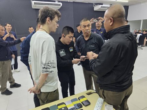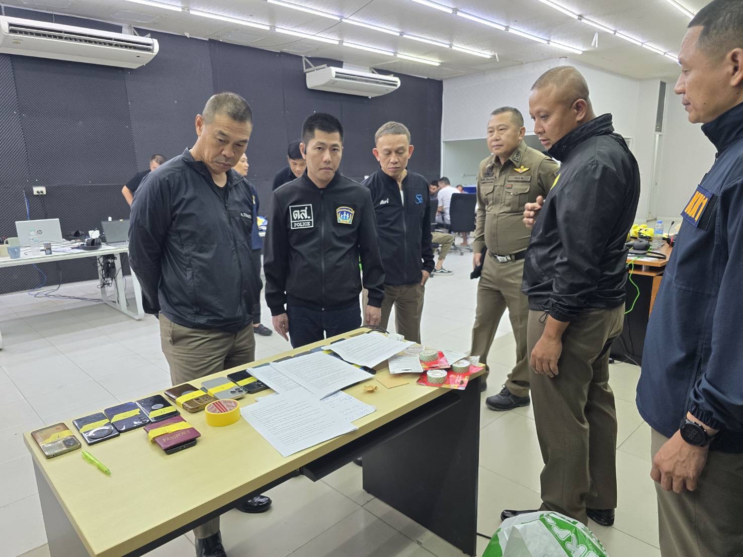 พร้อมด้วยของกลาง คอมพิวเตอร์โน้ตบุ๊ก ยี่ห้อ HP 21 เครื่อง คอมพิวเตอร์โน้ตบุ๊ก ยี่ห้อ ACER 4 เครื่อง เราเตอร์ยี่ห้อ ZTB รุ่น 3000 2 เครื่อง โทรศัพท์มือถือ จำนวน 16 เครื่อง อุปกรณ์หูฟังและสายชาร์ต 15 ชุด เอกสารสคริปต์ข้อความในการใช้หลอกลวง 5 ชุด จับกุมได้บริเวณเพิงพักไม่มีเลขที่ตรงข้ามวัดนวลจันทร์ แขวงนวลจันทร์ เขตบึงกุ่ม กรุงเทพมหานคร เมื่อเวลา 20.30 น.วันที่ 14 พ.ย. ที่ผ่านมา