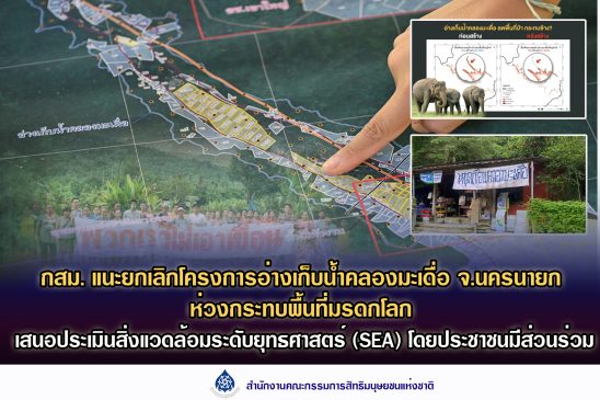 2. กสม. แนะยกเลิกโครงการอ่างเก็บน้ำคลองมะเดื่อ จ. นครนายก ห่วงกระทบพื้นที่มรดกโลก และวิถีชีวิตของประชาชน เสนอประเมินสิ่งแวดล้อมระดับยุทธศาสตร์ (SEA) โดยประชาชนมีส่วนร่วม