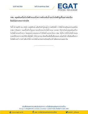 เมื่อวันนี้ 24 พ.ย.2568 ที่ผ่านมา นายสุทธิพงษ์ เฉลิมเกียรติ ผู้ช่วยผู้ว่าการผลิตไฟฟ้า การไฟฟ้าฝ่ายผลิตแห่งประเทศไทย (กฟผ.) เปิดเผยว่าขณะนี้ระดับน้ำสูงอย่างต่อเนื่องรอบโรงไฟฟ้าจะนะ จ.สงขลา จึงจำเป็นต้องหยุดเดินเครื่องโรงไฟฟ้าจะนะชั่วคราว โดยศูนย์ควบคุมระบบกำลังไฟฟ้าแห่งชาติของ กฟผ. ได้สั่งการให้โรงไฟฟ้าขนอม จ.นครศรีธรรมราช ของบริษัท ผลิตไฟฟ้า จำกัด (มหาชน) เดินเครื่องเพิ่มขึ้นเพื่อทดแทน พร้อมกับมีการสั่งเดินเครื่องจากโรงไฟฟ้ากระบี่ จ.กระบี่ เสริม ทำให้การจ่ายไฟฟ้าแก่ประชาชนยังคงเป็นปกติ ไม่มีผลกระทบแต่อย่างใด