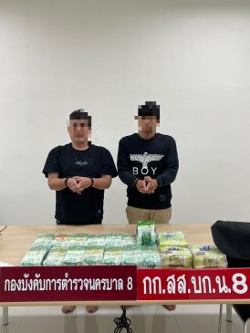 ต่อมาวันที่ 26 พฤศจิกายน 2568 เวลาประมาณ 03.10 น. ได้พบรถยนต์ ยี่ห้อ ISUZU รุ่น MU-X สีดำ ขับมาจอดหน้าบ้าน พบนายไกรธวัช หรือตั๊ก (สงวนนามสกุล) ผู้ต้องหาที่ 1 เป็นผู้ขับขี่ และพบนายนพรัตน์ หรือเจิน (สงวนนามสกุล) ผู้ต้องหาที่ 2 นั่งข้างคนขับ โดยผู้ต้องหาทั้งสองได้เปิดประตูลงมาจากรถ เจ้าหน้าที่ตำรวจชุดจับกุมจึงเข้าแสดงตัวเป็นเจ้าหน้าที่ตำรวจ และเจ้าพนักงาน ป.ป.ส.ขอทำการตรวจค้นภายในบ้านพัก โดยมีเหตุอันควรสงสัยว่าภายในบ้านอาจมียาเสพติดซุกซ่อนอยู่ ซึ่งผู้ต้องหายินยอมให้ทำการตรวจค้น และเป็นผู้นำตรวจค้น ผลการตรวจค้นพบยาไอซ์ จำนวน 6 ถุง น้ำหนักถุงละประมาณ 1 กิโลกรัม รวมน้ำหนักประมาณ 6 กิโลกรัม และยาเค จำนวน 29 ถุง น้ำหนักถุงละประมาณ 1 กิโลกรัม รวมน้ำหนักประมาณ 29 กิโลกรัม อยู่บริเวณห้องชั้น 2 ของตัวบ้าน เจ้าหน้าที่ตำรวจชุดจับกุมจึงได้แจ้งสิทธิตามกฎหมายและข้อกล่าวหาดังกล่าว จับกุมและควบคุมตัวผู้ต้องหาทั้ง 2 พร้อมของกลางส่งดำเนินคดีตามกฎหมาย