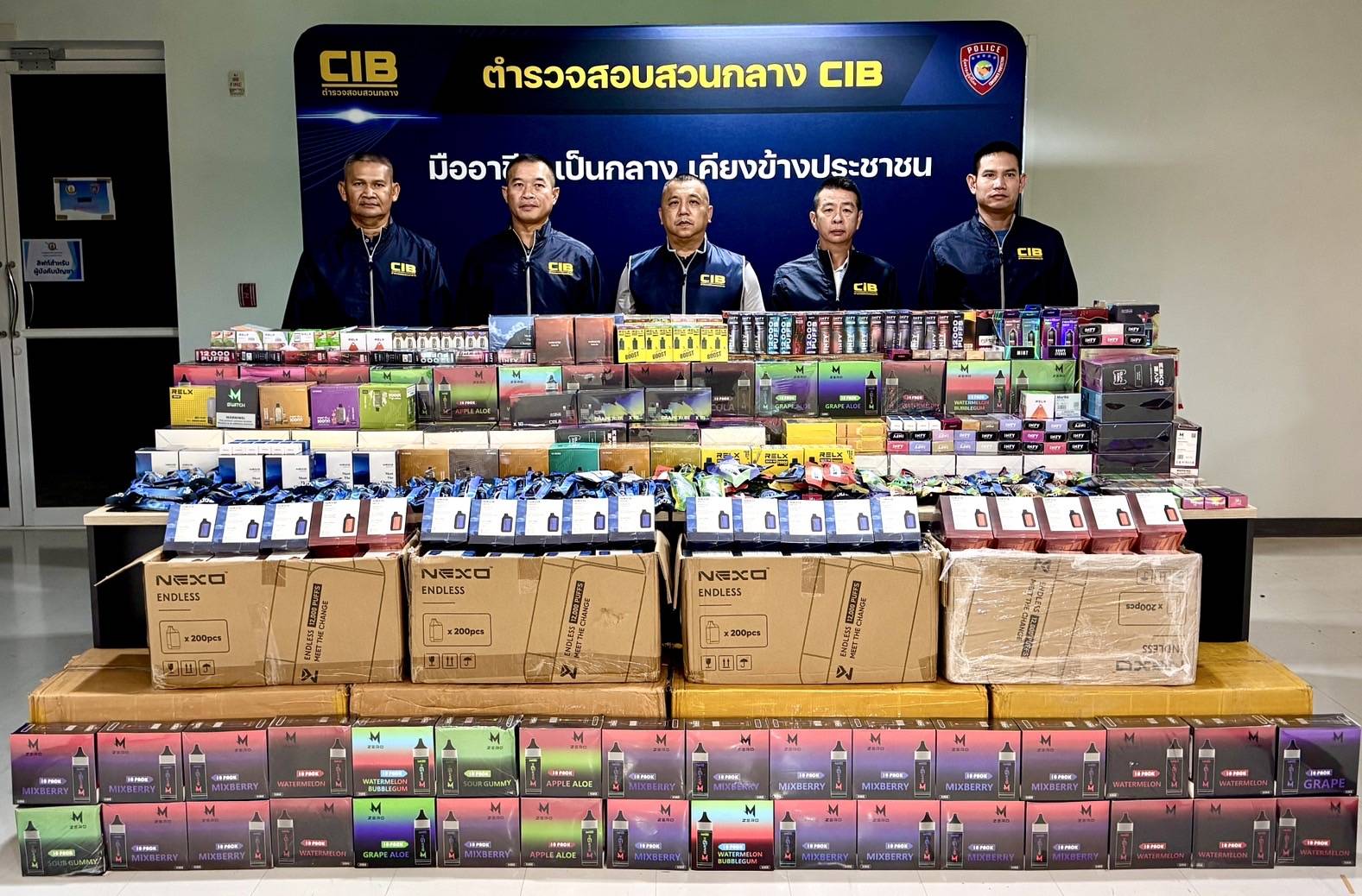 ตำรวจสอบสวนกลาง (CIB) โดยกองบังคับการปราบปรามการกระทำความผิดเกี่ยวกับการคุ้มครองผู้บริโภค “ทลายโกดังบุหรี่ไฟฟ้าเถื่อน ! ยึดกว่า 50,000 ชิ้น มูลค่าทะลุ 10 ล้าน”