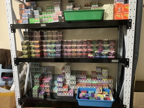 พร้อมตรวจยึดของกลาง บุหรี่ไฟฟ้าแบบใช้แล้วทิ้ง, แบบเปลี่ยนหัว, และตัวเครื่องบุหรี่ไฟฟ้า ประมาณ 50,000 ชิ้น รวมเป็นเงินประมาณ 10,000,000 บาท