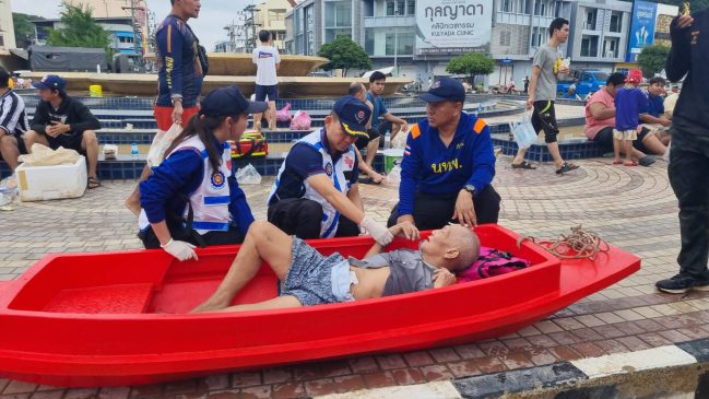 พร้อมกันนี้ หน่วยได้ จัดตั้งจุดบริการทางการแพทย์และปฐมพยาบาลเบื้องต้น เพื่อรองรับประชาชนที่ต้องการทำแผล การรักษาโรคทั่วไป และรับยาอย่างเร่งด่วน เพื่อขยายการดูแลให้ครอบคลุมยิ่งขึ้น หน่วยได้ ตั้งจุดบริการเพิ่มเติมบริเวณวงเวียนในพื้นที่หาดใหญ่ ทำให้ประชาชนในเขตเมืองสามารถเข้าถึงการรักษาได้สะดวกและรวดเร็วยิ่งขึ้น ควบคู่ไปกับการดูแลด้านสุขภาพ ทีมแพทย์ยังได้ เคลื่อนย้ายกลุ่มเปราะบาง ได้แก่ ผู้สูงอายุ ผู้ป่วยติดเตียง และเด็ก จากบ้านเรือนที่ยังมีน้ำท่วมสูง ไปยังศูนย์พักพิงชั่วคราวและสถานพยาบาลที่ปลอดภัย เพื่อป้องกันความเสี่ยงด้านสุขภาพและอันตรายจากกระแสน้ำ