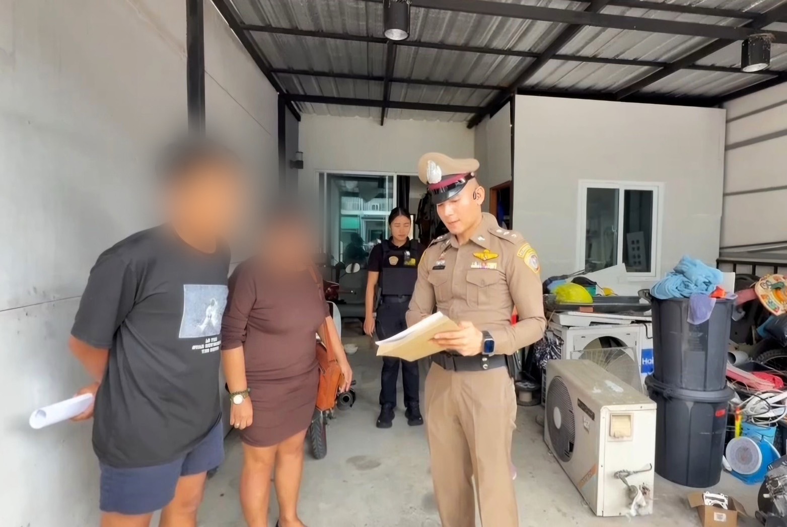 สว.กก.4 บก.ปอศ., พ.ต.ท.ณัฐดนัย บำรุงศิลป์ สว.กก.4 บก.ปอศ. และ พ.ต.ต.หญิง ชนากานต์ นิรัมย์ สว.กก.4
