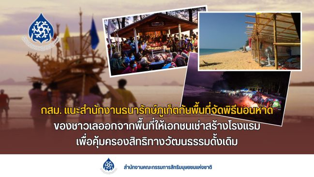 แนะสำนักงานธนารักษ์ภูเก็ตกันพื้นที่จัดพิธีนอนหาดของชาวเลออกจากพื้นที่ให้เอกชนเช่าสร้างโรงแรม เพื่อคุ้มครองสิทธิทางวัฒนธรรมดั้งเดิม –