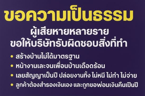 ผู้สื่อข่าวรายงานเพิ่มเติมว่านายนฤพล (สงวนนามสกุล) กรรมการผู้จัดการบริษัท ชื่อดัง ที่รับเหมาก่อสร้างบ้าน แล้วไม่เสร็จ ได้ชี้แจงผ่านรายการทีวีช่องดังช่องหนึ่ง โดยเบื้องต้นขอสงวนชื่อบริษัทไว้ก่อน ว่า ปัญหาที่เกิดขึ้นนั้นเป็นเพียงปัญหาเล็กน้อยที่บริษัทรับสร้างบ้านส่วนใหญ่ต้องเจอ ซึ่งปัญหาที่เกิดขึ้นสามารถแก้ไขปัญหาได้ทันทีและ ยืนยันว่าบ้านทุกหลังสร้างตามมาตรฐาน ที่ บริษัทกำหนด ส่วนสาเหตุหลักที่ทำให้การ ทำงานล่าช้า มาจากการหาช่าง ในพื้นที่จังหวัดตราด 3 หลัง คนละเจ้าของ ซึ่งช่วงที่ทำให้ลูกค้าไม่พอใจ คือช่วงที่ตอนนั้นไทยกับกัมพูชารบกันอยู่ 2 เดือนทำให้แรงงานในพื้นที่ขาดแคลน