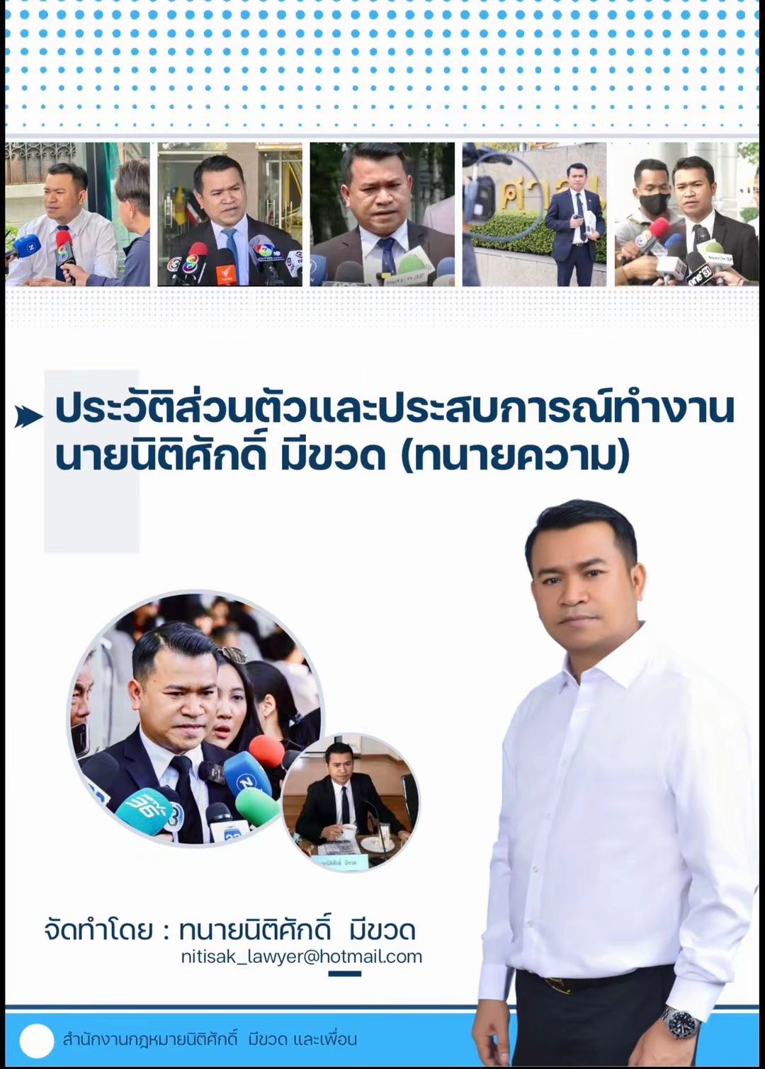 นายนิติศักดิ์ มีขวด มีบทบาทสำคัญในการเป็น “ทนายอาสา” ช่วยเหลือคดีที่ส่งผลกระทบต่อส่วนรวมหลายกรณี