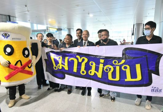 โดยพิพัฒน์ รัชกิจประการ รองนายกรัฐมนตรีและรัฐมนตรีว่าการกระทรวงคมนาคม ได้รับมอบเสื้อขับรถ ไม่ซดเหล้า จากเครือข่ายเหยื่อเมาแล้วขับ และเยี่ยมชมการตรวจวัดแอลกอฮอล์ทางลมหายใจพนักงานขับรถไฟ ที่จะนำรถไฟออกจากสถานีกลางกรุงเทพอภิวํฒน์