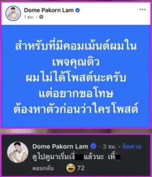 เหตุการณ์เริ่มต้นขึ้นเมื่อเพจเฟซบุ๊กทางการของ โดม ปกรณ์ ลัม เข้าไปคอมเมนต์ใต้รูปภาพของ จินนี่ ยศสุดา ในโพสต์ของ “ดิว วีรวัฒน์” นักธุรกิจชื่อดัง โดยใช้ถ้อยคำที่ส่อไปในทางเพศว่า “ดูไปดูมาเริ่มXXXแล้วนะ XXX” แม้ต่อมาทางเพจของโดมจะรีบออกมาปฏิเสธว่าเจ้าตัวไม่ได้เป็นคนโพสต์เอง และกำลังเร่งหาตัวคนกระทำผิด แต่ดูเหมือนเรื่องนี้จะไม่จบลงง่ายๆ เพียงแค่การขอโทษ