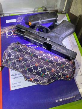 จากการตรวจสอบพื้นที่โดยรอบ พบปลอกกระสุนปืนขนาด 9 มม. จำนวน 5 ปลอก ตกกระจายอยู่ในที่เกิดเหตุ เจ้าหน้าที่จึงเก็บไว้เป็นหลักฐาน ขณะเดียวกันพบผู้ก่อเหตุยืนรอมอบตัวกับเจ้าหน้าที่ตำรวจ โดยมีบาดแผลบริเวณหัวเข่าขวา และตรวจยึดของกลางเป็นอาวุธปืนพกสั้นยี่ห้อ GLOCK ขนาด 9 มม. ซองกระสุน 1 อัน ซองปืนพก 1 ซอง และกระเป๋าคาดเอวสีน้ำตาลเข้ม 1 ใบ