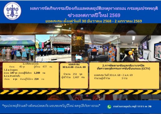 ขณะที่ยอดคดีสะสมตลอด 4 วัน (30 ธันวาคม 2568 – 2 มกราคม 2569) รวมทั้งสิ้น 2,959 คดี แบ่งเป็น