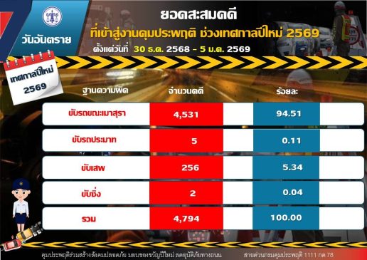 5 มกราคม 2569 รวมทั้งสิ้น 4,794 คดี แบ่งเป็น