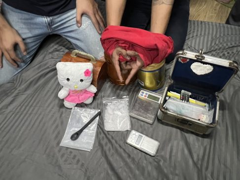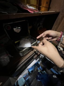 จนกระทั่งเวลา 12.10 น. ในวันเดียวกัน นายพงศกรฯ ได้เดินทางเข้ามาพบเจ้าหน้าที่ตำรวจ เจ้าหน้าที่ตำรวจชุดจับกุมได้แสดงบัตรประจำตัวข้าราชการตำรวจ และบัตรเจ้าพนักงาน ป.ป.ส. ให้บุคคลทั้ง 3 ตรวจดู จากนั้นบุคคลทั้ง 3 ยินยอมให้เจ้าหน้าที่ตำรวจชุดจับกุมทำการเข้าตรวจค้นด้วยความยินยอมสมัครใจ จากการตรวจค้นพบของกลางยาไอซ์น้ำหนักประมาณ 100 กรัม,เครื่องชั่งน้ำหนัก 2 เครื่อง,ช้อนสำหรับตักแบ่งยาเสพติดจำนวน 1 คัน,ถุงแบ่งจำนวน 1 ชุด อยู่